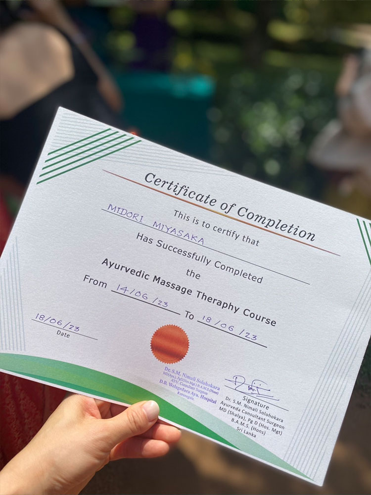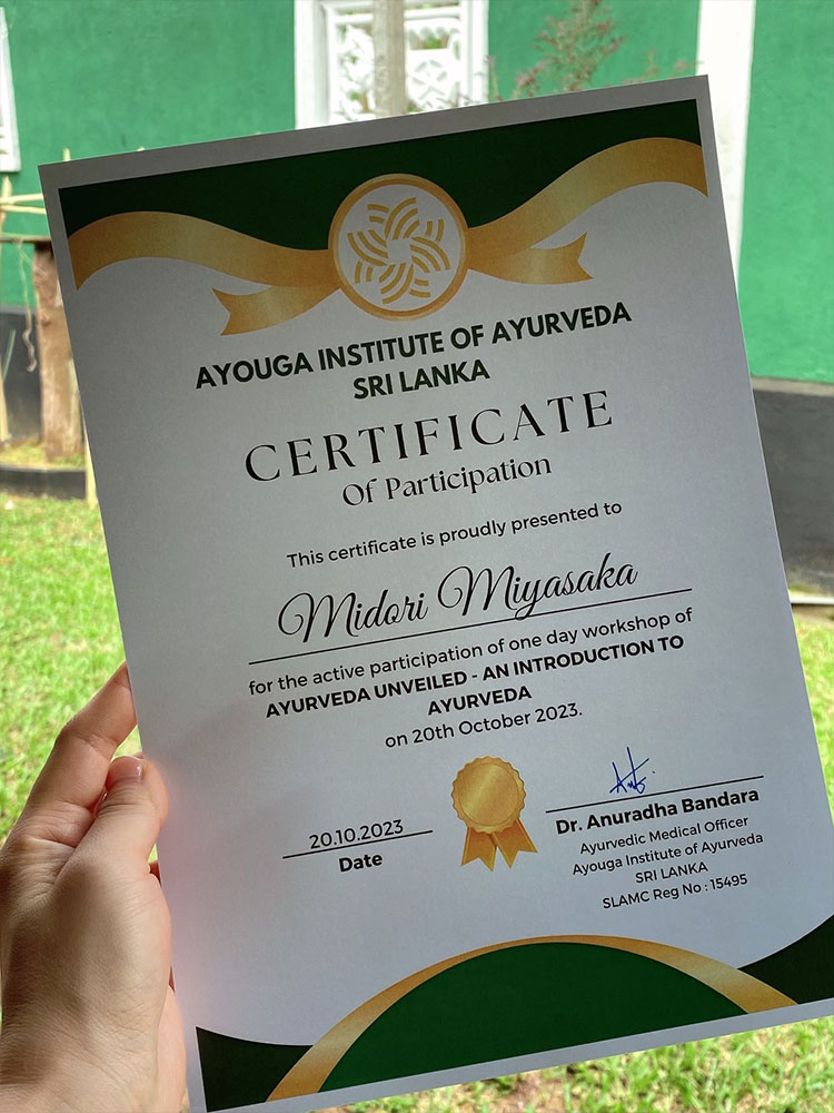 令和5年、アーユルヴェーダの資格を再度取るためスリランカに渡り、勉強を重ね
