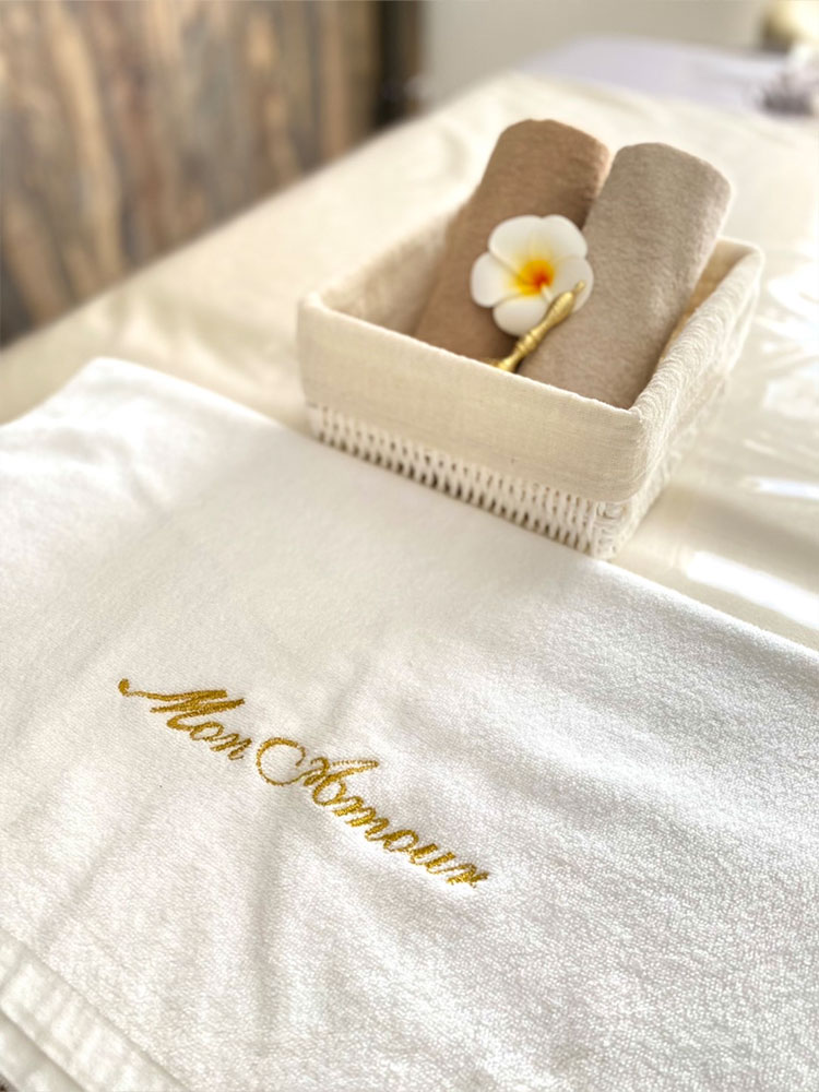 薬草オイルのマッサージでリフトアップ、血行促進でむくみもスッキリ。脳が休まる優しいタッチで幸福感が高まります。